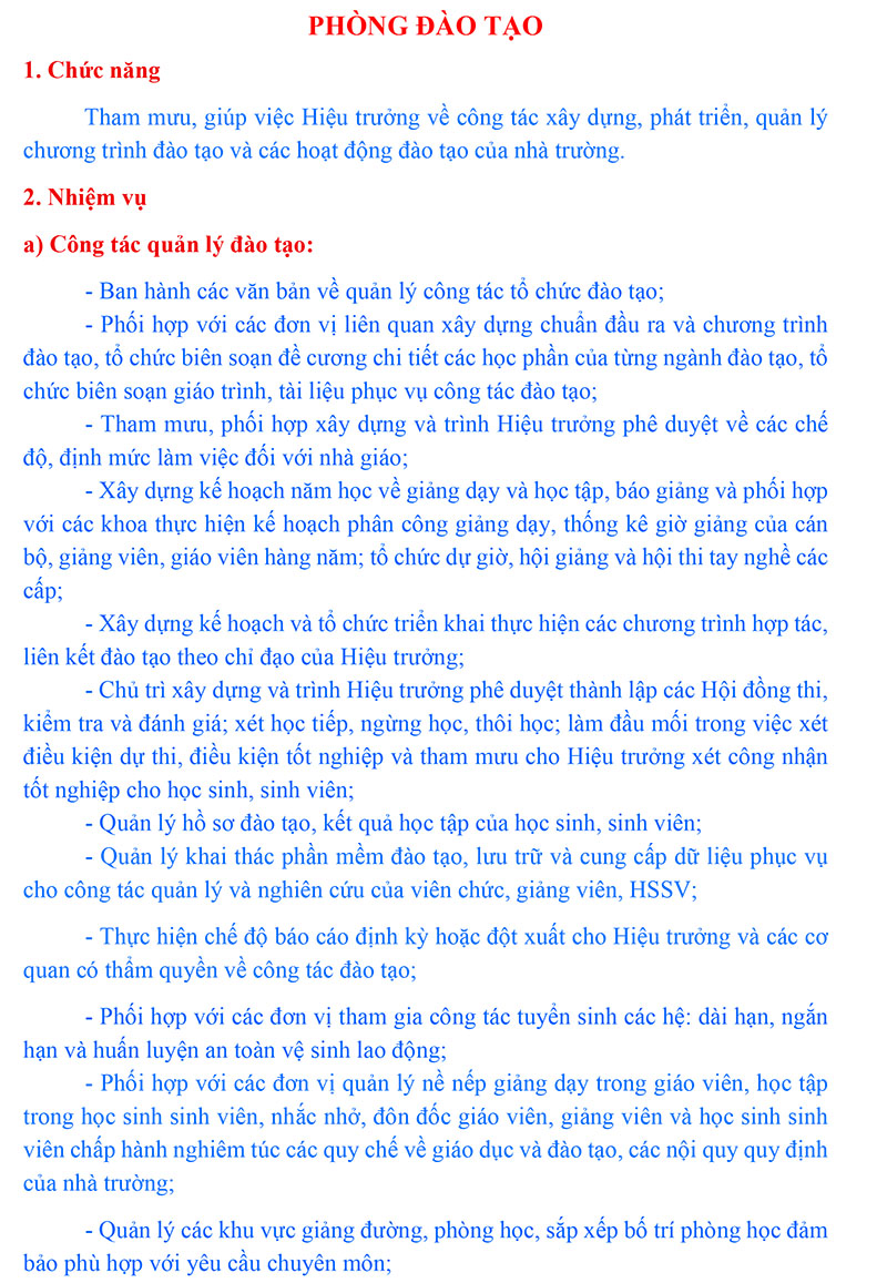 Là đơn vị tham mưu, giúp việc cho Hiệu trưởng nhà trường trong công tác xây dựng, phát triển, quản lý chương trình đào tạo và các hoạt động đào tạo của nhà trường.