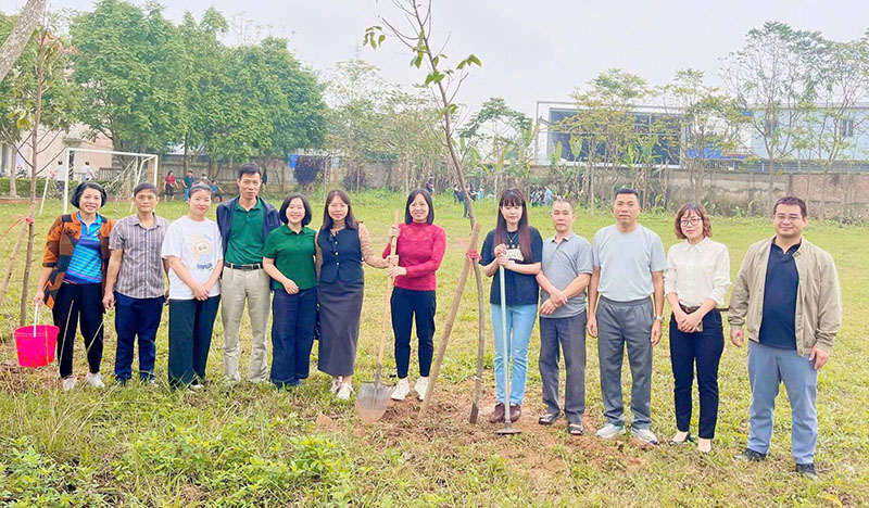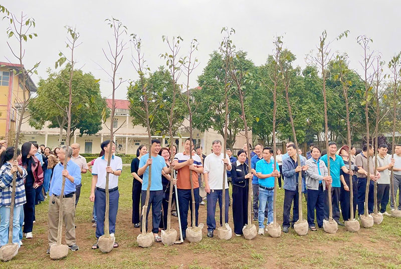 Từng hố đất được đào, từng cây xanh được vun trồng là minh chứng cho sự đồng lòng, gắn kết và quyết tâm xây dựng môi trường học đường thân thiện.