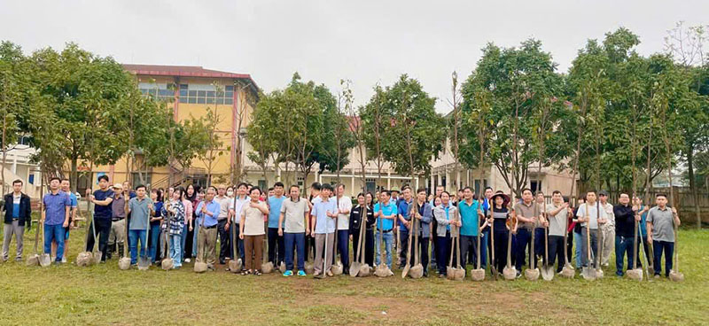Ngay từ sáng sớm, đông đảo CBVC - NLĐ đã có mặt chuẩn bị cây giống, dụng cụ và phân chia khu vực trồng. Những hàng cây mới được trồng thẳng tắp góp phần cải tạo cảnh quan, tạo môi trường học tập xanh – sạch – đẹp cho sinh viên sinh hoạt tại khu nội trú.